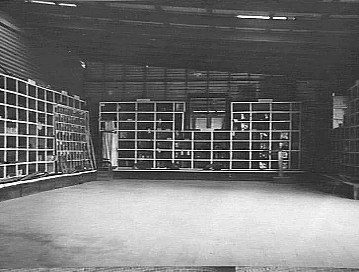 An interior view of W. J. Thompson 's store, H.V. McKay agent at Bordertown, showing the shelving and storage facilities.