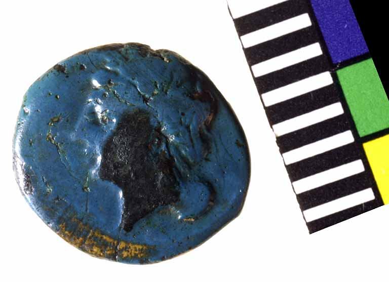 Coins, like this, bearing the Greek letter IS are dated to or just before the First Punic War (264-241 BC). Crawford reports that six different types of copper coins were in simulatneous production, this was the smallest denomination. The man-headed bull on the reverse was a river-god called Achelous who appeared as a suitor to a mortal in a myth in the form of a bull.
