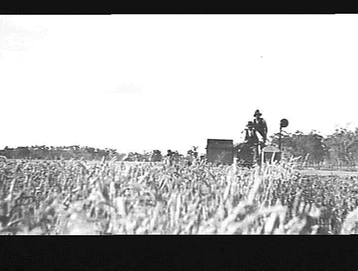 Sunshine auto header with a Fordson engine at Messrs Hamilton Bros farm Inverell NSW 1928 harvesting wheat crop.