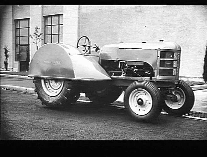 Massey Harris Model '101''Junior' tractor specially modified to go under branches in orchards. The driver platform, air cleaner and exhaust pipe have been lowered and special mudguards have been fitted.