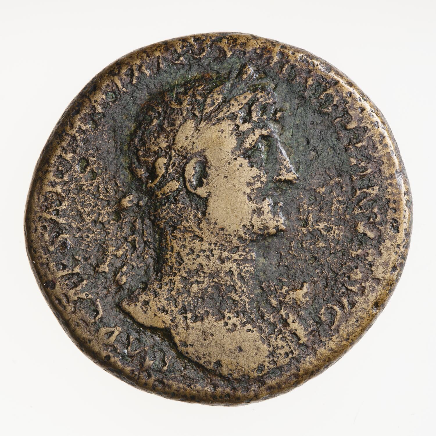 Laureate bust of Hadrian facing right, drapery on left shoulder; around, IMP CAESAR TRAIANVS HADRIANVS AVG