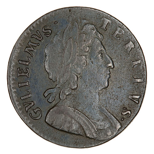 Laureate bust of William III wearing armour facing right, around, GVLIELMVS TERTIVS