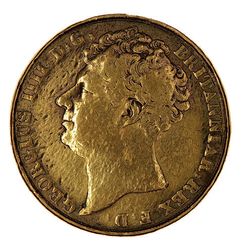 Bare head of the King facing left; below in small lettering the artist's initials, I.B.M. (J. B. Merlin); around, GEORGIUS IIII D: G: BRITANNIAR: REX F:D:
