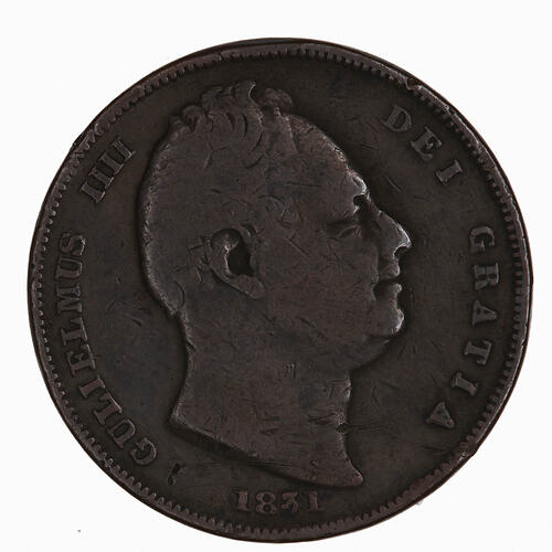 Bare head of the King facing right; around, GULIELMUS IIII DEI GRATIA; below, 1831