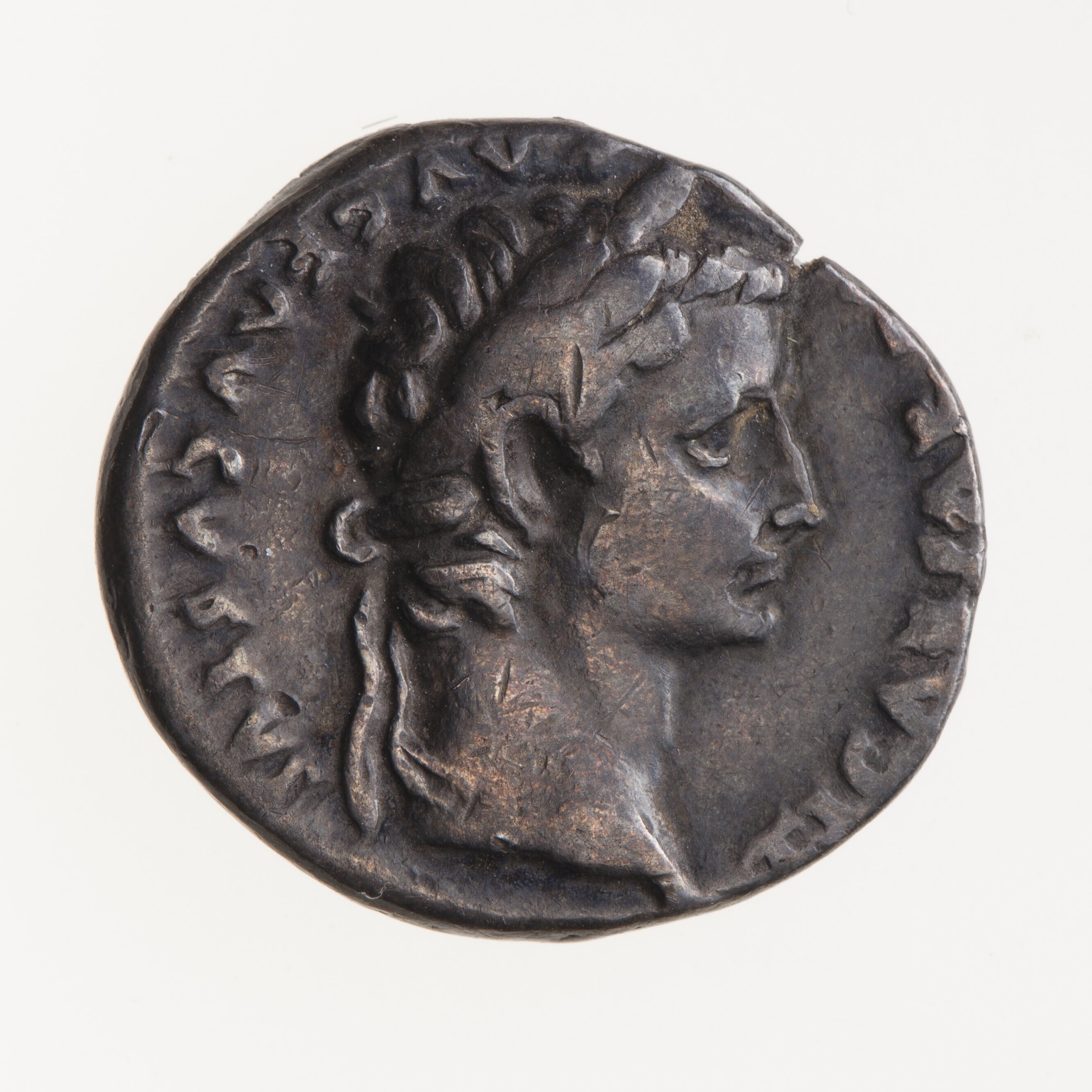 Laureate head of Tiberius facing right; around, TI CAESAR [DIVI] AVG F AVGVSTVS