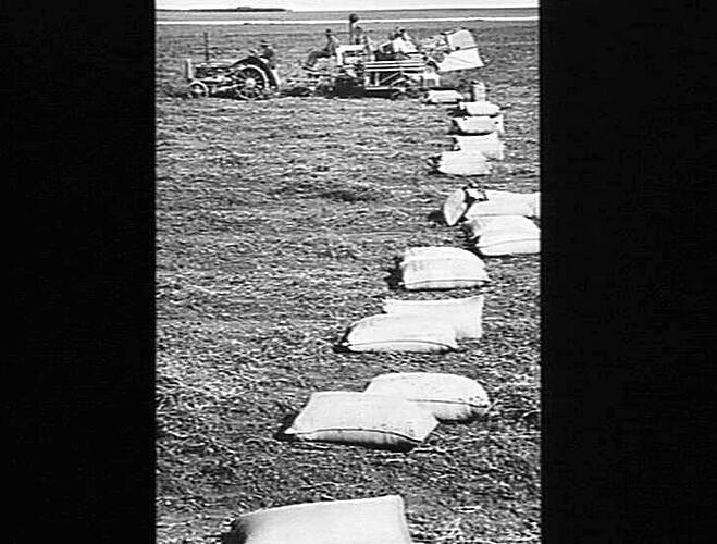 Agricultural Equipment, Bags, Crops, Land, Tractors, Workers
