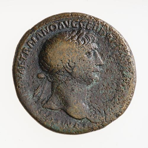 Orichalcum sestertius of the Emperor Trajan struck in the period 103 to 111 AD, Ancient Roman Empire. Minted by Rome. Trajan was Consul for the fifth time (COS V on this coin) in 104 AD and for the sixth time from 1 January 112 AD. This makes the period within which this coin was produced 104 to 111 AD.