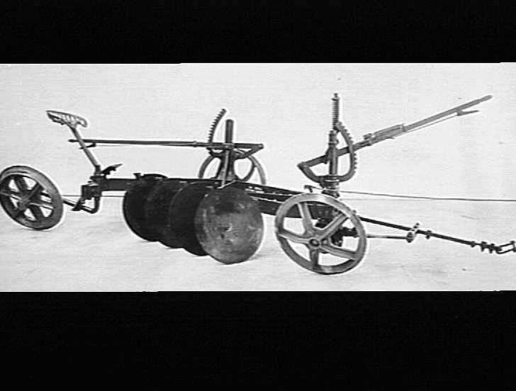 'July 1928' side view of a four-disc plough.