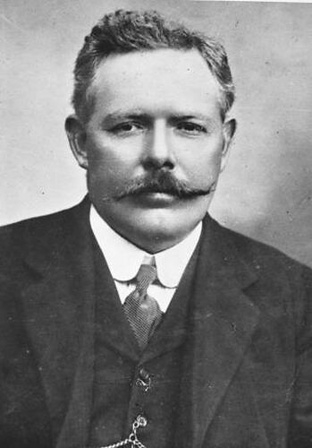 Portrait of H. V. McKay, 1912. McKay founded the McKay Sunshine Harvester enterprise which manufactured agricultural equipment, Sunshine, Australia.