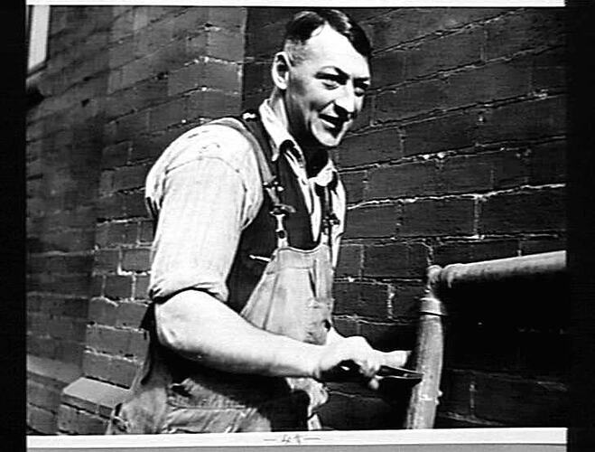 Black and white photograph of Herb Sully, a plumber and sub-foreman of the building carpenters at H.V McKay Massey Harris.