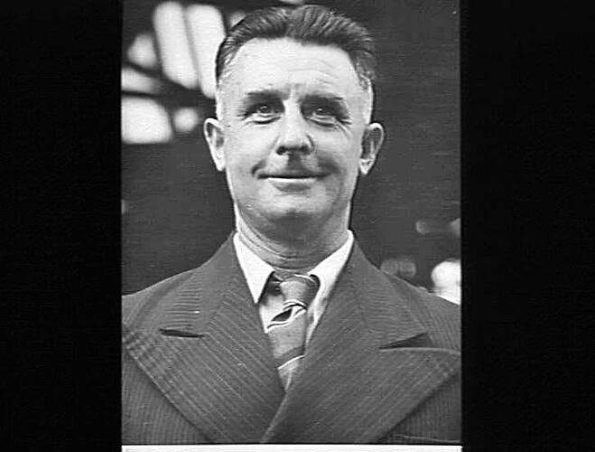 Black and white photograph of Don McCann who worked as a leading hand in heat treatment at H.V McKay Massey Harris. He was one of the first directors of the company's co-operative housing society which was formed in 1950.