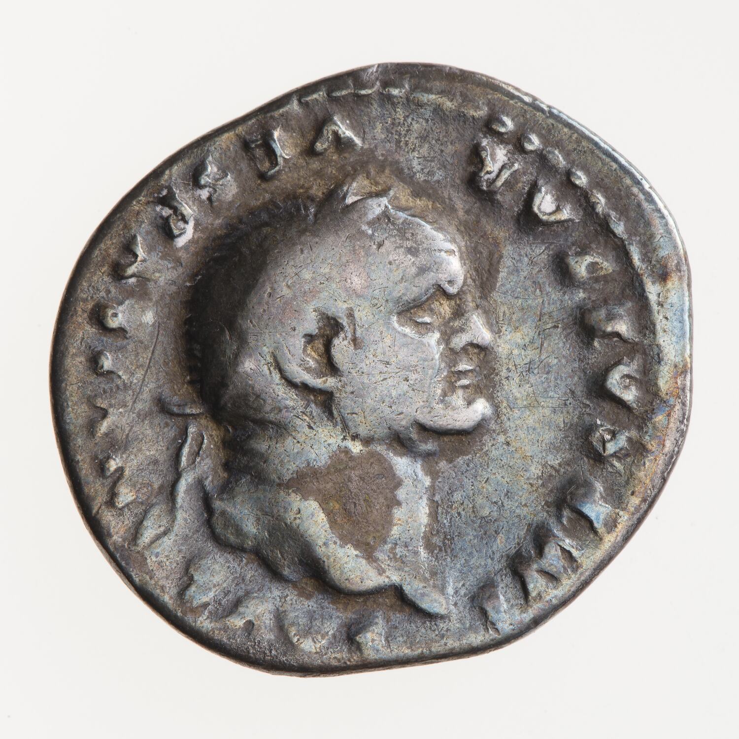 Laureate head of Vespasian facing right; around, IMP CAESAR VESPASIANVS AVG