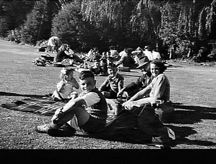 Mr Cliff Walters and his family at the H.V. McKay annual picnic at the Frankston sports ground in 1949.