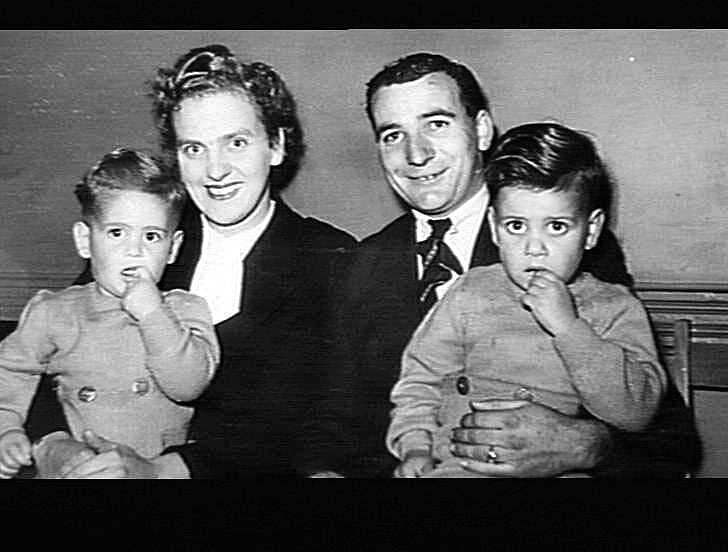 Black and white photograph of Mr and Mrs Mark Cross with their two sons at the H.V McKay Massey Harris social and dance held in Adelaide in December 1950.