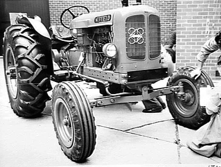 Photograph of a 'Nuffield' tractor fitted with a'Perkins' engine: December 1950
