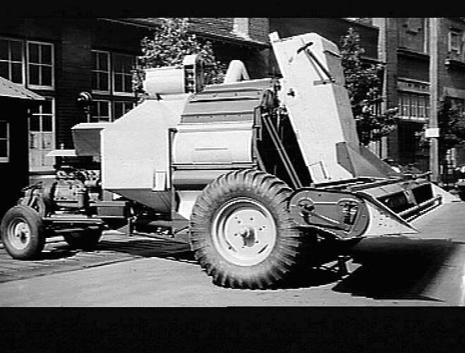 The 'new type' experimental auto header was the last header designed by H. S. Taylor and was quite revolutionary. It was developed over a period of 4 or 5 years. When Massey-Ferguson took over in 1955, this design was discarded and three machines were act.