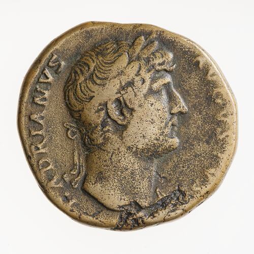 Draped bust of Hadrian facing right head bare; around, HADRIANVS AVGVSTVS