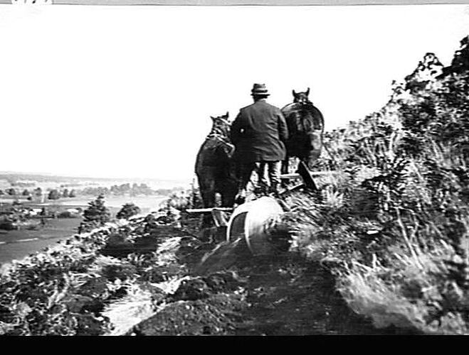 `SUNGRADE' REVERSIBLE PLOUGH AT WORK ON MR. W. B. HARBOUN'S FARM AT MOUNT BUNINGYONG, VIC. SEPT 1933