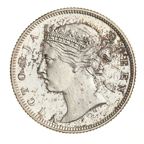 Diademed head of Queen Victoria, neck bare, facing left; around, VICTORIA QUEEN