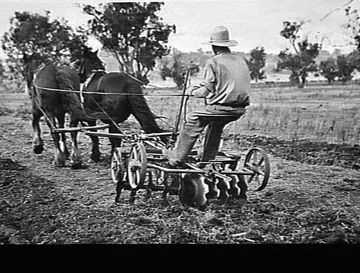 '10 disc 'Sunfield' fitted with scalloped discs; Messrs J. P. Hocort, Harvey, W.A.: May 1940' two-horse drawn 10 disc'Sunfield' fitted with scalloped discs.