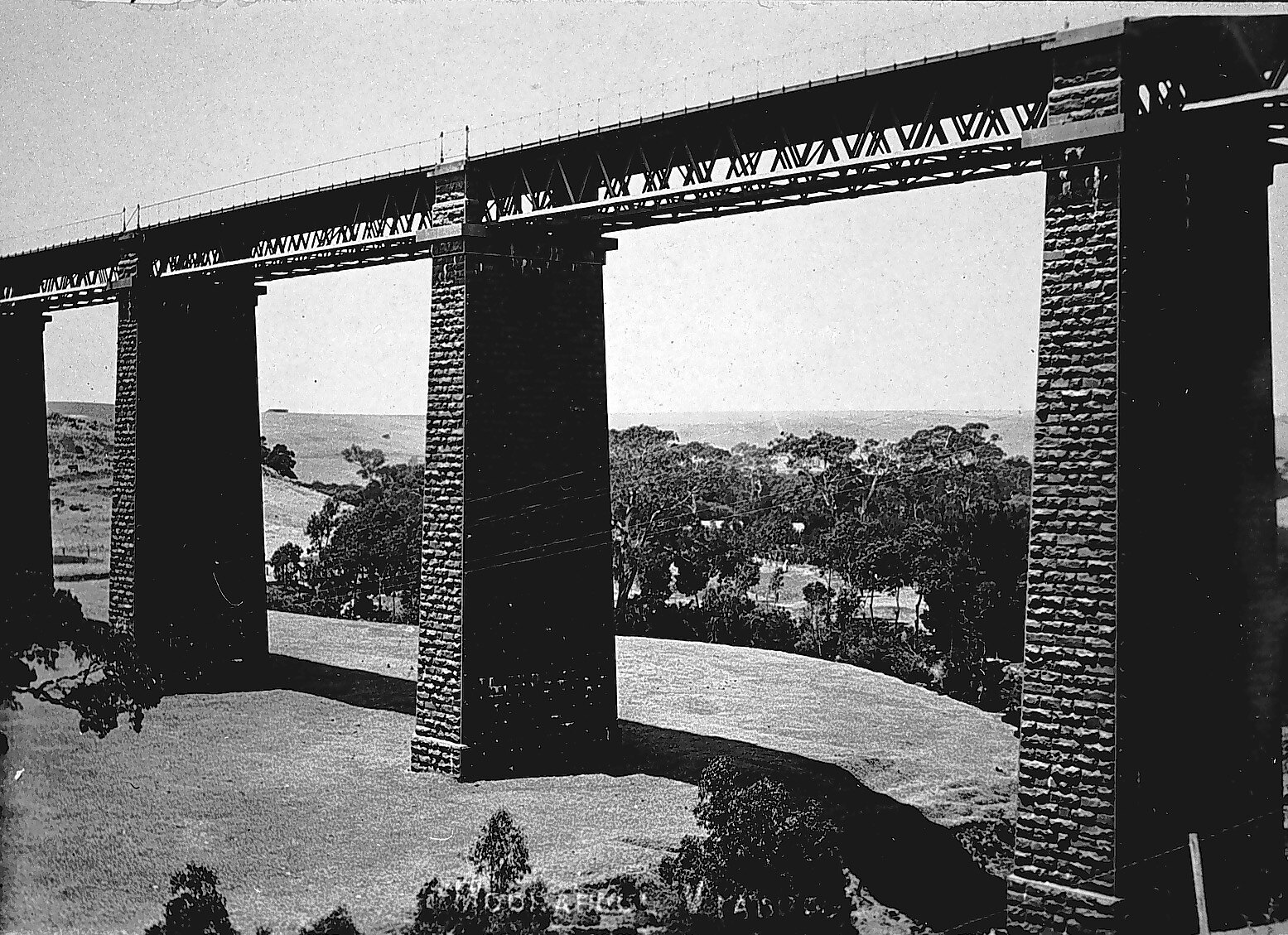 Looking past the Moorabool Viaduct towards farmlands.