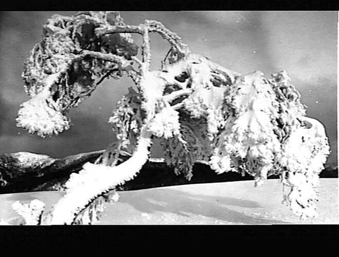 Winter, Mt St Bernard. Tree covered with snow in foreground. (a second copy at cn 22).