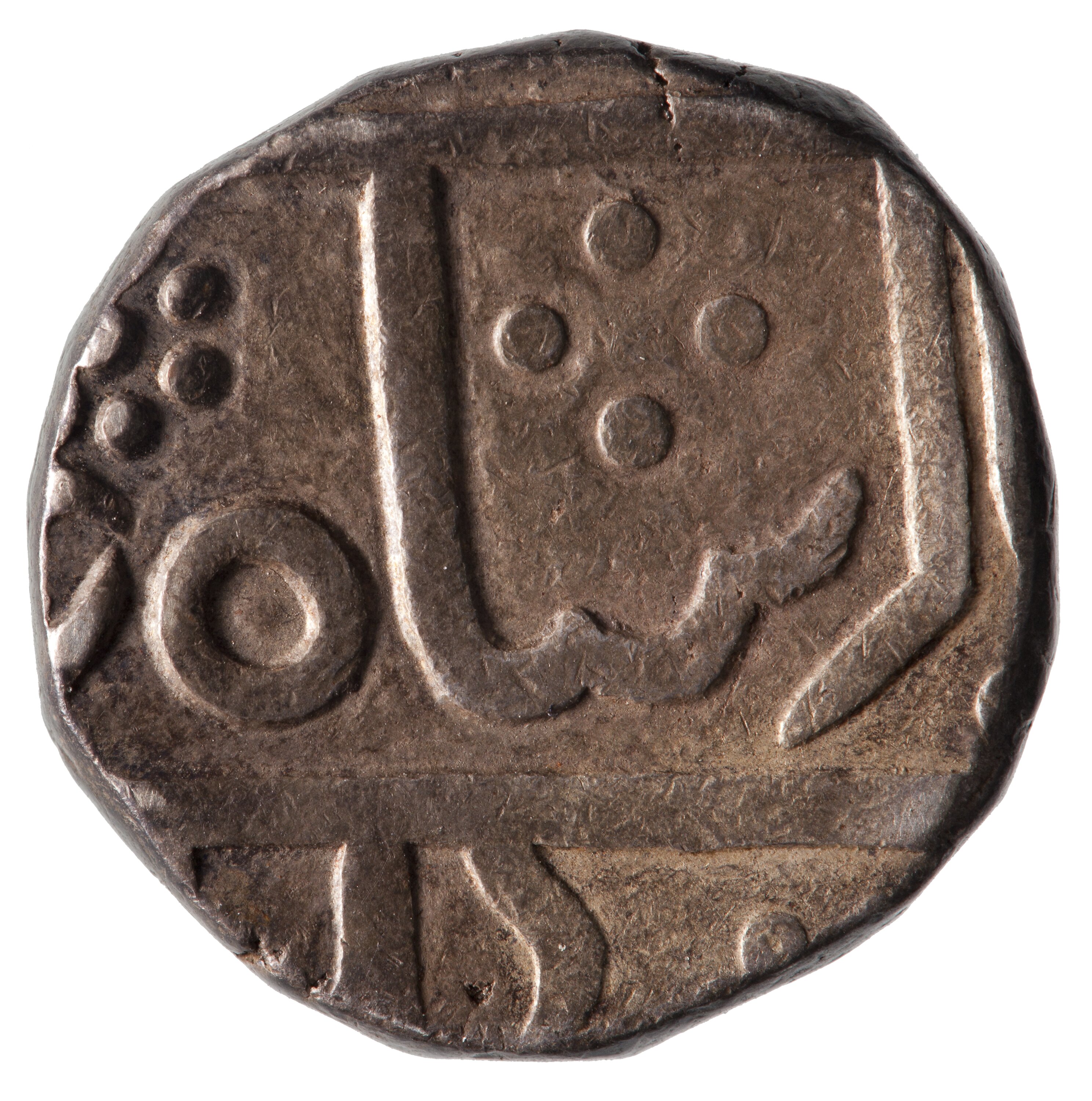 Silver 1 Rupee coin issued by Maharaja Jayaji Rao I in the Gwalior Princely State