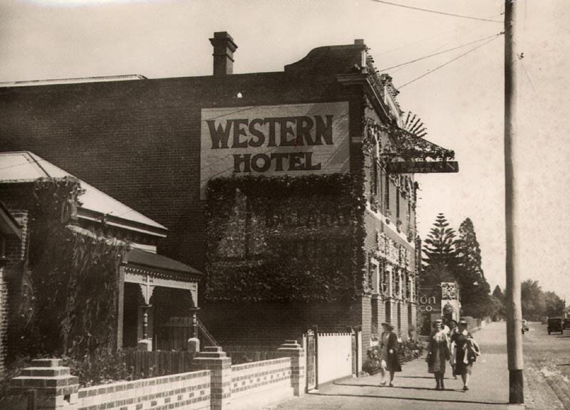 Decorations on the Western Hotel. There appears to be a yacht on the side of the building while the front is festooned with garlands. Part of the celebrations for Ballarat Gala Day.