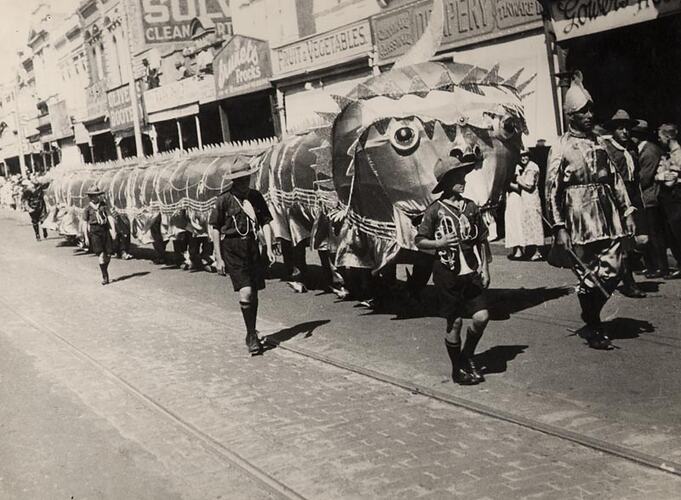 Boy Scouts, Bugles, Celebrations, Fancy Dress Costumes, Insects, Parade Floats, Parades, Scouting Movement, Shops, Signage
