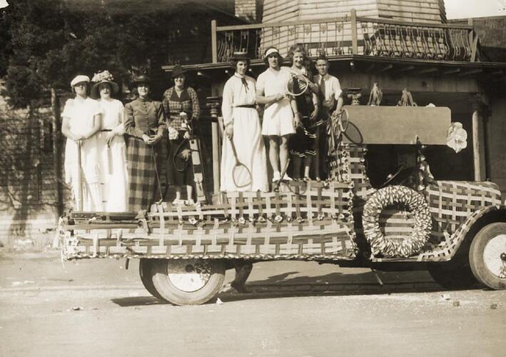 Celebrations, Cricket, Fancy Dress Costumes, Golf, Motor Trucks, Parade Floats, Parades, Roads, Sport, Tennis