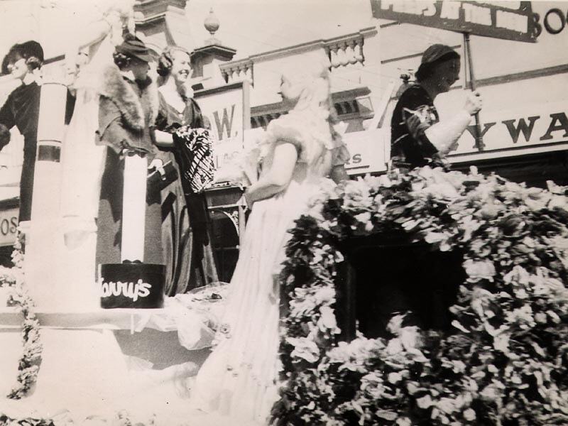 Costumed women on a parade float. Part of the celebrations for Ballarat Gala Day.