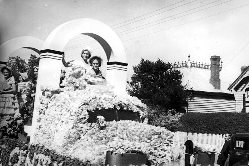 Celebrations, Crinolines, Fancy Dress Costumes, Flowers, Houses, Motor Cars, Parade Floats, Parades
