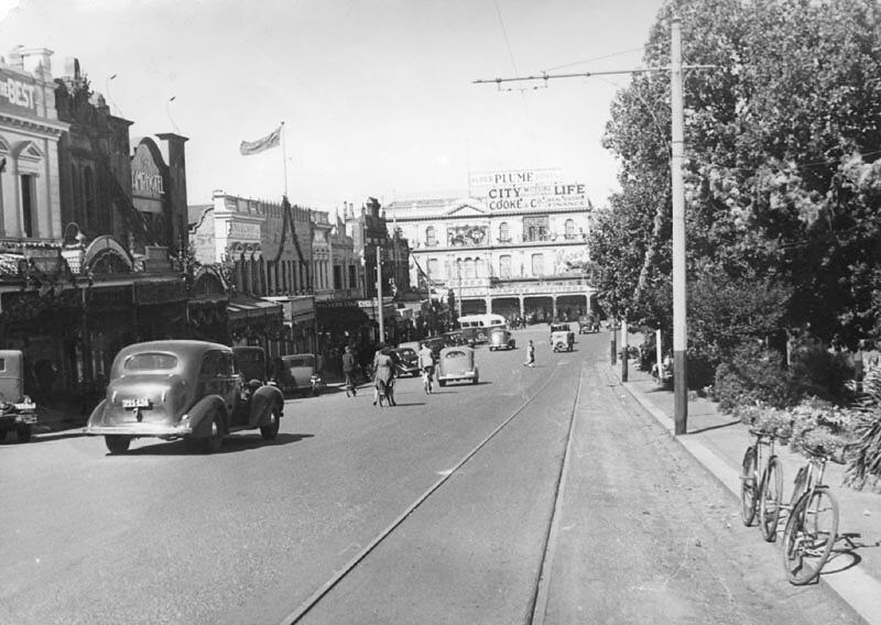 A decorated street scene. Part of the celebrations for Ballarat Gala Day.