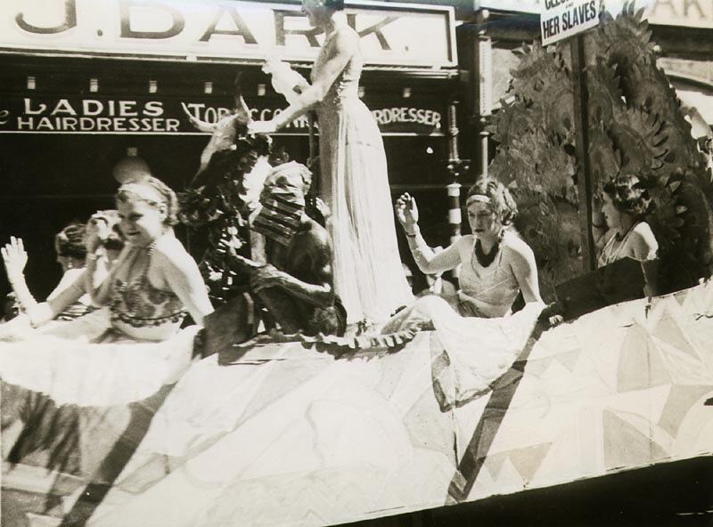 People in a float 'Cleopatra & her slaves' part of the celebrations for Ballarat Gala Day.