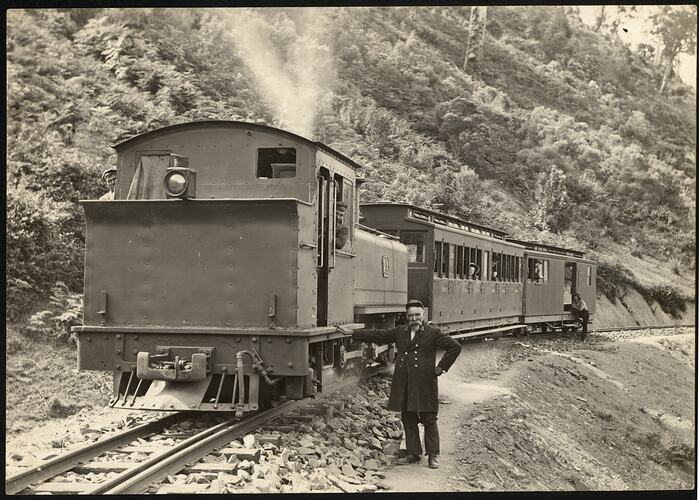 Walhalla railway train includes guard and driver.