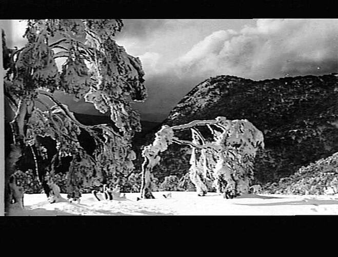 Mt Smythe from Mt St Bernard. Snow covered trees in foreground. (a second copy appears at cn 29).