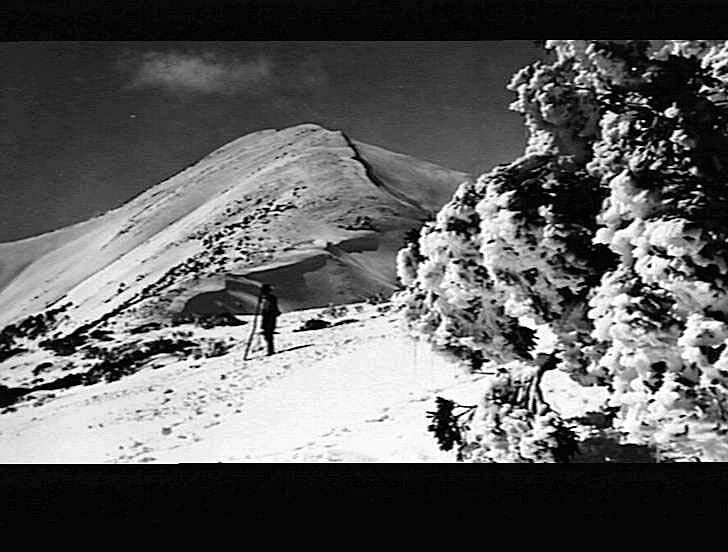 Mount Feathertop. Man with pole in foreground.