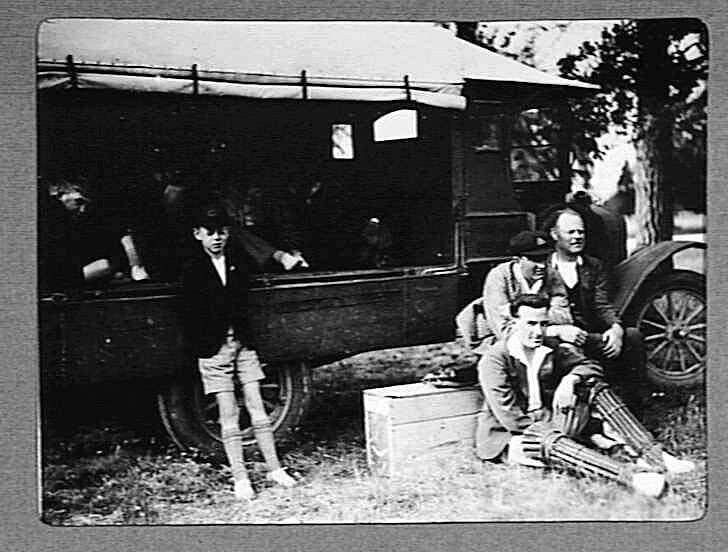 Males by a truck.