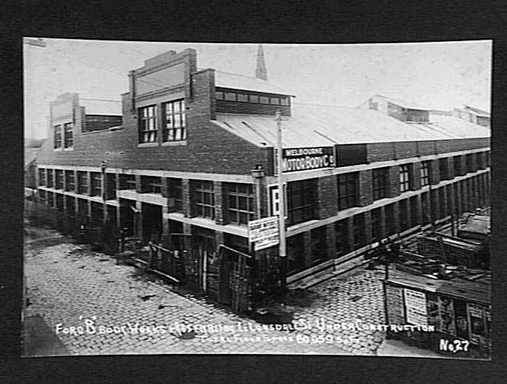 Ford 'B' bodyworks & assembling. Lt. Lonsdale Street under construction. Total floor space 60059 sq ft.
