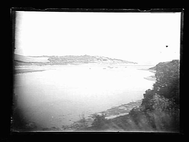 Sea inlet; men in small boats. (perhaps Hopkins River).