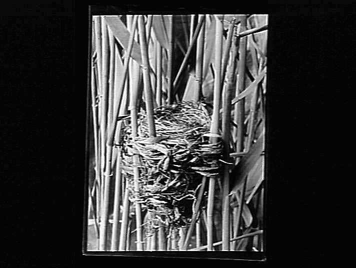 Image taken by A.J. Campbell in preparation for his definitive work, 'Nests and Eggs of Australian Birds including the Geographical Distribution of the Species and Popular Observations Thereon', published by Pawson & Brailsford, Sheffield, England in 1900. This particular image was featured as Plate 9, where Campbell notes 'Nest - Cup shaped, deep; outwardly composed of long, soft, pliable stems of aquatic plants, woven and intermixed with swamp dÚbris, roots, &c.; usually firmly secured on four or five reeds standing in water. Other examples are composed of a mass of dark-coloured roots; lined inside in either case with a goodly supply of clean yellowish grass, chiefly the soft tops of flowering portions. Dimension over all, 3 to 3¢ inches by 3+ to 4 inches in depth; egg cavity, 1 5/8 to 1¥ inches across by 2 inches deep.' Campbell was obviously disappointed with this particular image as he comments: "The illustration, although conveying a fair idea of the nest, is hardly a successful photograph."
