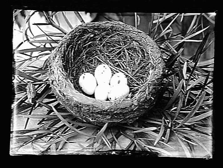 Strong bowl shaped nest containing 5 eggs from acacia.