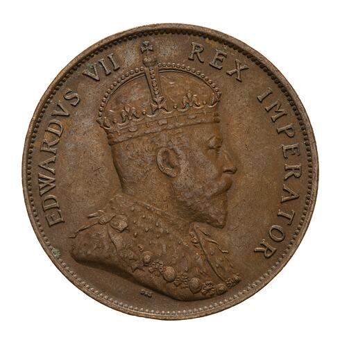 Crowned bust of the King facing right; around, EDWARDVS VII REX IMPERATOR
