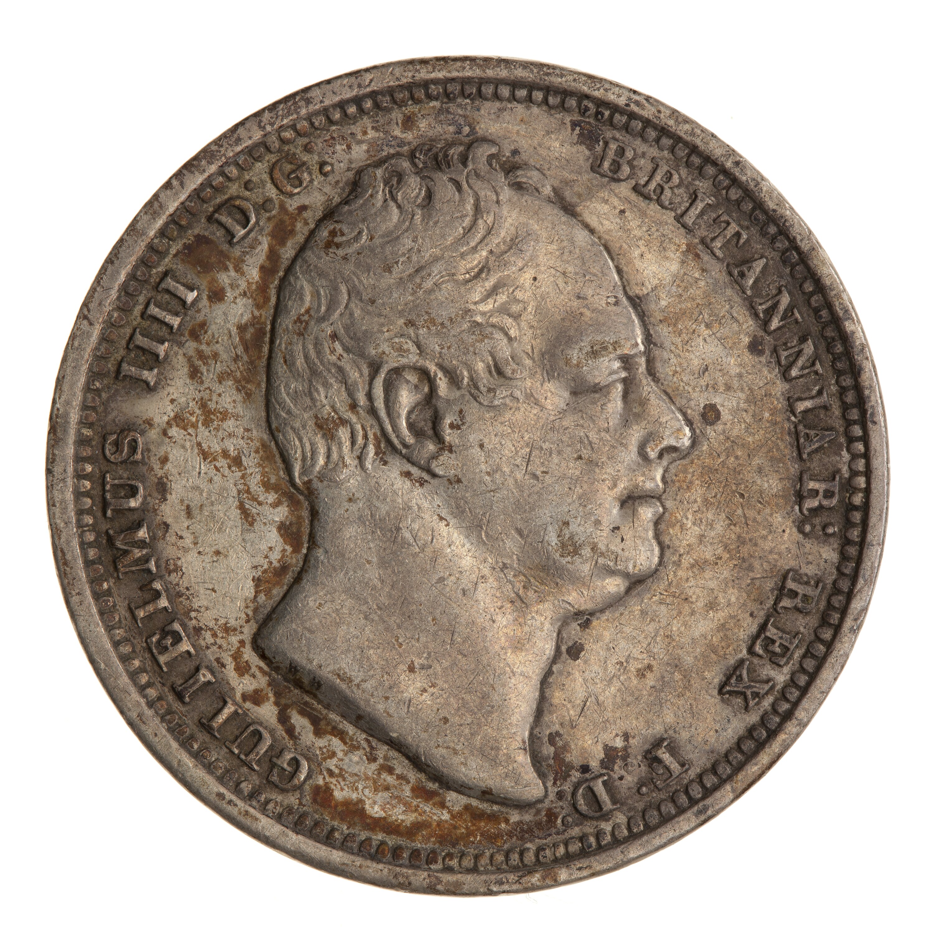 Head of the King facing right; around, GULIELMUS IIII D: G: BRITANNIAR: REX F:D: