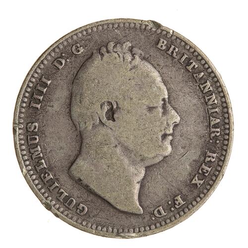 Head of the King facing right; around, GULIELMUS IIII D: G: BRITANNIAR: REX F:D: