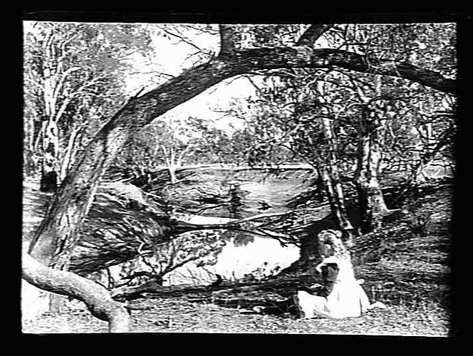 Girl looking at billabong.