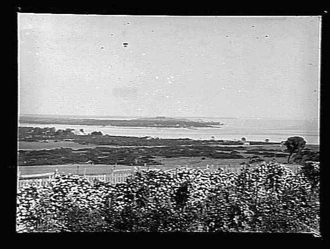 Coastal inlet scene; viewed from flower garden.