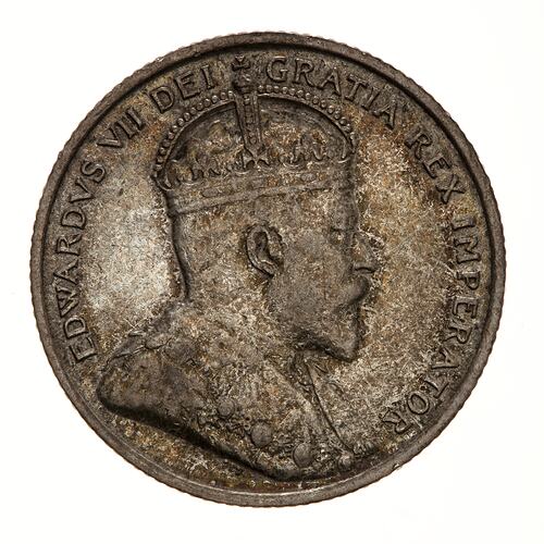 Crowned bust of the King facing right; around, EDWARDVS VII DEI GRATIA REX IMPERATOR
