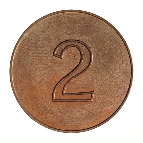 In 1963 Robert Muldoon became Under-Secretary to the Minister of Finance. He was responsibe for the introduction of decimal currency into New Zealand. This trial for a 2 cent coin with the same diameter and edge employed on the adopted coin.