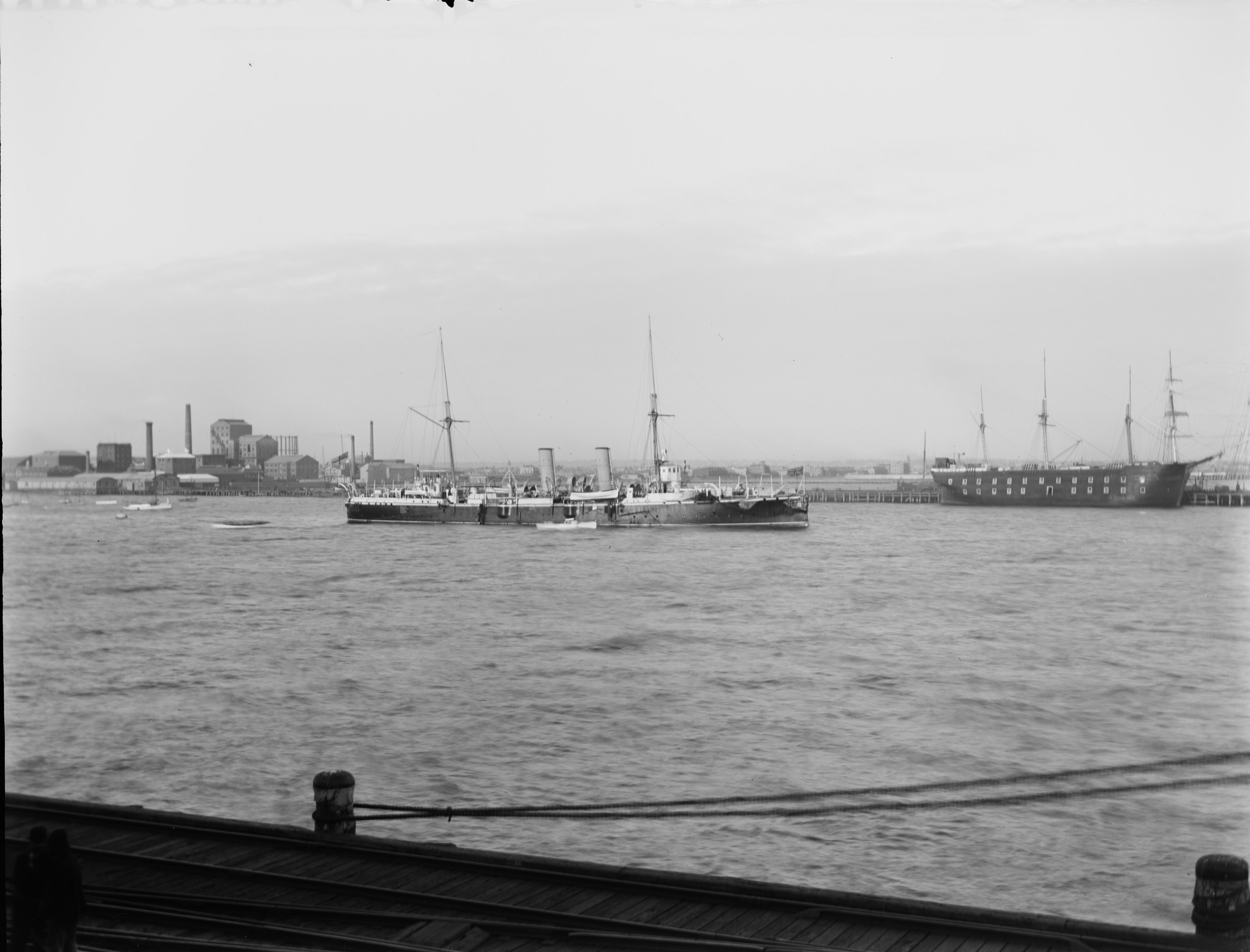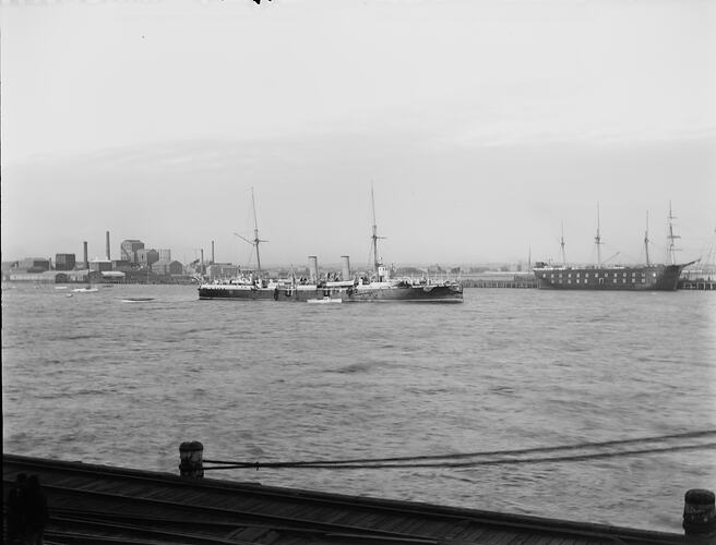 The HMS Wallaroo anchored at Port Melbourne, May 1898.